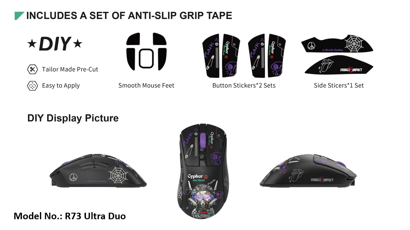 The R73 Ultra Duo Dual Mode Wireless Gaming Mouse - Cypher Ghost combines versatility with precision, offering both Bluetooth and 2.4GHz wireless connectivity for seamless switching. Engineered for professional gamers, it features a high-accuracy sensor and customizable DPI settings to match your playstyle. Ergonomically designed for comfort during extended sessions, this mouse ensures fast, reliable response times and durability, empowering you to maintain peak performance in any gaming environment.